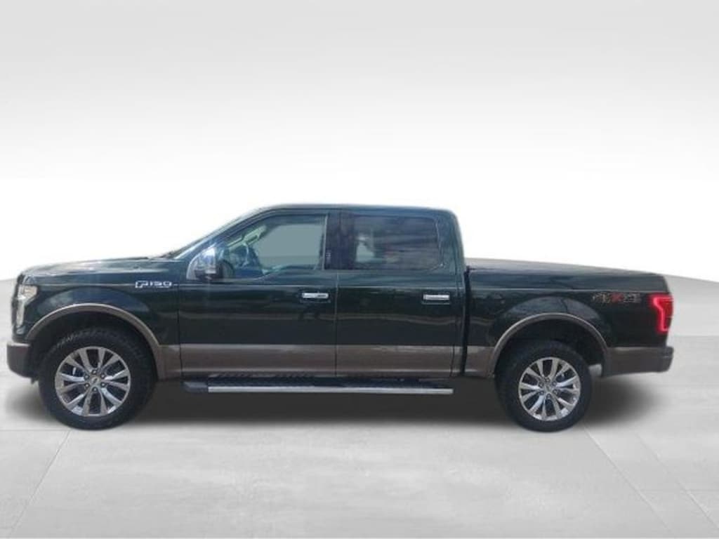 Green Gem Metallic 2016 Ford F-150 Lariat 4WD 6-Speed Automatic Electronic 5.0L V8 FFV 4WD, Auxiliary Transmission Oil Cooler, Class IV Trailer Hitch Receiver, Lane-Keeping System, Pro Trailer Backup Assist, Tailgate Step w/Tailgate Lift Assist, Technology Package, Trailer Tow Package, Twin Panel Moonroof, Upgraded Front Stabilizer Bar, Wheels: 20" Chrome-Like PVD, 110V/400W Outlet, 2nd Row Heated Seats, 4-Wheel Disc Brakes, 7 Speakers, ABS brakes, Adjustable pedals, Air Conditioning, Alloy wheels, AM/FM radio: SiriusXM, Auto High Beam w/Rain-Sensing Windshield Wipers, Auto-dimming door mirrors, Auto-dimming Rear-View mirror, Automatic temperature control, BLIS Blind Spot Information System, Brake assist, Bumpers: chrome, CD player, Chrome 3-Bar Style Grille w/Chrome Surround, Chrome Angular Step Bars, Chrome Door & Tailgate Handles w/Body-Color Bezel, Chrome Skull Caps on Exterior Mirrors, Compass, Delay-off headlights, Driver door bin, Driver vanity mirror, Dual front impact airbags, Dual front side impact airbags, Electronic Stability Control, Equipment Group 502A Luxury, Exterior Parking Camera Rear, Front anti-roll bar, Front Center Armrest w/Storage, Front dual zone A/C, Front fog lights, Front reading lights, Front wheel independent suspension, Fully automatic headlights, Heated door mirrors, Heated front seats, Heated Steering Wheel, Illuminated entry, Lariat Chrome Appearance Package, Leather-Trimmed 40/20/40 Front Seat, Leather-Trimmed Bucket Seats, LED Side-Mirror Spotlights, Low tire pressure warning, Memory seat, Occupant sensing airbag, Outside temperature display, Overhead airbag, Overhead console, Panic alarm, Passenger door bin, Passenger vanity mirror, Pedal memory, Power door mirrors, Power driver seat, Power Glass Sideview Mirr w/Body-Color Skull Caps, Power passenger seat, Power steering, Power Tilt/Telescoping Steering Column w/Memory, Power windows, Quad Beam LED Headlamps & Taillamps, Radio data system, Radio: Single-CD w/SiriusXM Satellite, Radio: Sony Single CD w/HD & SiriusXM Satellite, Rear reading lights, Rear seat center armrest, Rear step bumper, Rear window defroster, Remote keyless entry, Remote Start System w/Remote Tailgate Release, Reverse Sensing System, Security system, Single-Tip Chrome Exhaust, Speed control, Speed-sensing steering, Split folding rear seat, Steering wheel mounted audio controls, SYNC 3, Tachometer, Telescoping steering wheel, Tilt steering wheel, Traction control, Trip computer, Turn signal indicator mirrors, Universal Garage Door Opener, Variably intermittent wipers, Ventilated front seats, Voice-Activated Navigation, Voltmeter, 4WD, Auxiliary Transmission Oil Cooler, Class IV Trailer Hitch Receiver, Lane-Keeping System, Pro Trailer Backup Assist, Tailgate Step w/Tailgate Lift Assist, Technology Package, Trailer Tow Package, Twin Panel Moonroof, Upgraded Front Stabilizer Bar, Wheels: 20" Chrome-Like PVD.