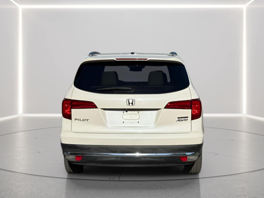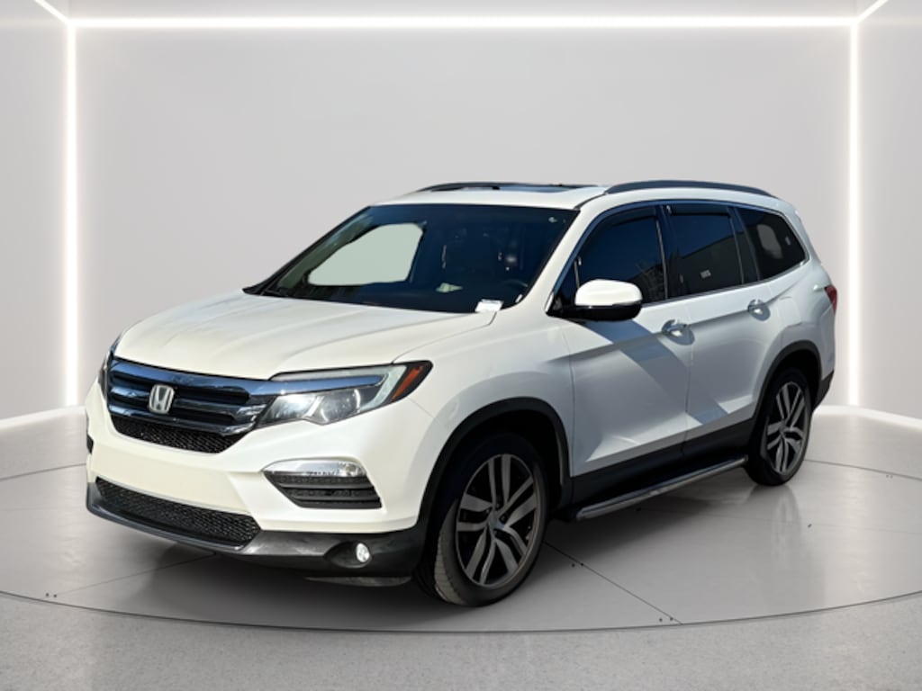 White Diamond Pearl 2016 Honda Pilot Touring AWD 9-Speed Automatic 3.5L V6 24V SOHC i-VTEC Clean CARFAX. AWD, 10 Speakers, 20" Alloy Wheels, 3rd row seats: split-bench, 4-Wheel Disc Brakes, 4.334 Axle Ratio, A/V remote, ABS brakes, Air Conditioning, Alloy wheels, AM/FM radio: SiriusXM, Auto-dimming Rear-View mirror, Automatic temperature control, Brake assist, Bumpers: body-color, Compass, Delay-off headlights, Driver door bin, Driver vanity mirror, Dual front impact airbags, Dual front side impact airbags, Electronic Stability Control, Emergency communication system: HondaLink Assist, Exterior Parking Camera Rear, Four wheel independent suspension, Front anti-roll bar, Front Bucket Seats, Front Center Armrest, Front dual zone A/C, Front fog lights, Front reading lights, Fully automatic headlights, Garage door transmitter: HomeLink, Headphones, Heated door mirrors, Heated Front Bucket Seats, Heated front seats, Honda Satellite-Linked Navigation System, Illuminated entry, Leather Shift Knob, Leather-Trimmed Seats, Low tire pressure warning, Memory seat, Navigation System, Occupant sensing airbag, Outside temperature display, Overhead airbag, Overhead console, Panic alarm, Passenger door bin, Passenger vanity mirror, Power door mirrors, Power driver seat, Power Liftgate, Power moonroof, Power passenger seat, Power steering, Power windows, Radio data system, Radio: AM/FM Premium Audio System, Rear air conditioning, Rear anti-roll bar, Rear audio controls, Rear reading lights, Rear seat center armrest, Rear window defroster, Rear window wiper, Remote keyless entry, Roof rack: rails only, Security system, SiriusXM Radio, Speed control, Speed-sensing steering, Speed-Sensitive Wipers, Split folding rear seat, Spoiler, Steering wheel mounted audio controls, Tachometer, Telescoping steering wheel, Tilt steering wheel, Traction control, Trip computer, Turn signal indicator mirrors, Variably intermittent wipers, AWD.