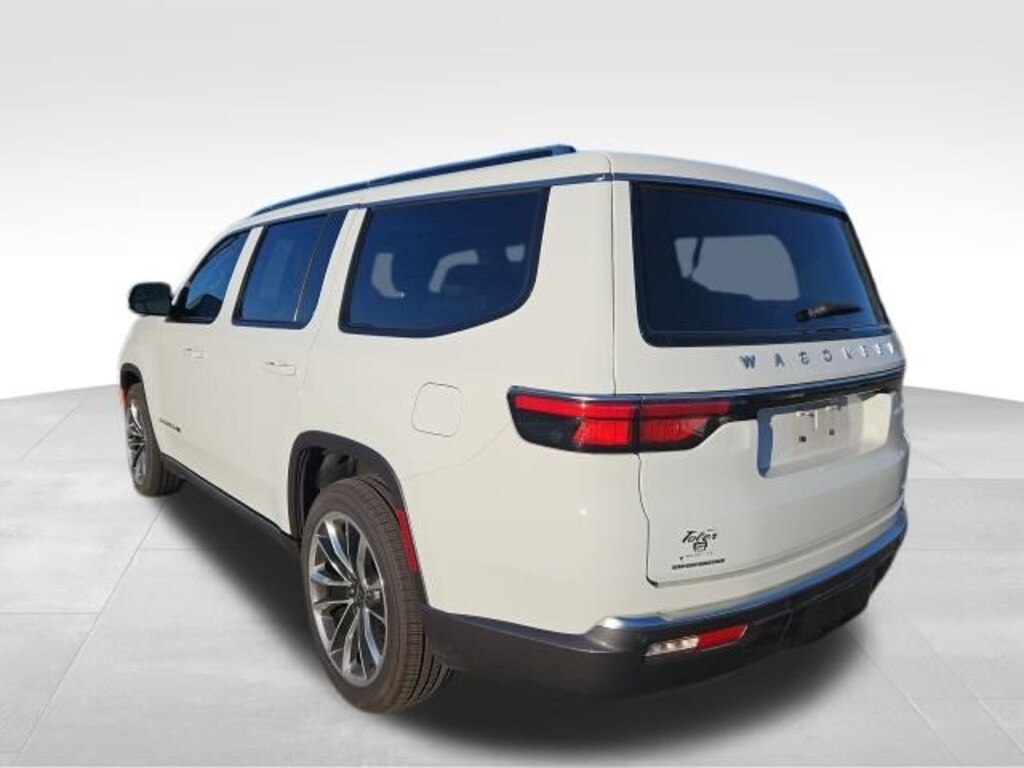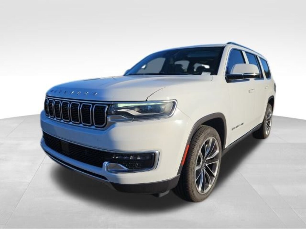 Bright White Clearcoat 2022 Jeep Wagoneer Series III 4WD 8-Speed Automatic 5.7L V8 CARFAX One-Owner. 19 Speaker McIntosh Audio System, 3 Panel Sunroof, 7-Passenger Seating, Adjustable Roof Rail Crossbars, Cargo Cover, Flexible Seating Group, Floor Console w/Cupholder, Front Passenger Interactive Display, Luxury Front & Rear Floor Mats, Power Deployable Running Boards, Power Tip/Slide Recline 2nd Row Buckets, Premium Group I (DISC), Reversible Carpet/Vinyl Cargo Mat, Wheels: 22" x 9.0" Premium 3 Aluminum (DISC), 10 Speakers, 3.21 Rear Axle Ratio, 3rd row seats: bench, 4-Wheel Disc Brakes, ABS brakes, Adjustable pedals, Air Conditioning, All-Season Floor Mats, Alloy wheels, AM/FM radio: SiriusXM with 360L, Anti-whiplash front head restraints, Audio memory, Auto High-beam Headlights, Auto-dimming door mirrors, Auto-dimming Rear-View mirror, Auto-leveling suspension, Automatic temperature control, Brake assist, Bumpers: body-color, Cargo Tray, Compass, Delay-off headlights, Driver door bin, Driver vanity mirror, Driver's Seat Mounted Armrest, Dual front impact airbags, Dual front side impact airbags, Electronic Stability Control, Exterior Parking Camera Rear, Four wheel independent suspension, Front anti-roll bar, Front Bucket Seats, Front Center Armrest w/Storage, Front dual zone A/C, Front fog lights, Front reading lights, Fully automatic headlights, Garage door transmitter, Genuine wood console insert, Genuine wood dashboard insert, Genuine wood door panel insert, Heads-Up Display, Heated door mirrors, Heated front seats, Heated rear seats, Heated steering wheel, Illuminated entry, Knee airbag, Leather Trimmed Bucket Seats, Low tire pressure warning, Memory seat, MOPAR Interior Protection Package, Navigation System, Normal Duty Suspension, Occupant sensing airbag, Outside temperature display, Overhead airbag, Overhead console, Panic alarm, Passenger door bin, Passenger seat mounted armrest, Passenger vanity mirror, Pedal memory, Power adjustable front head restraints, Power door mirrors, Power driver seat, Power Liftgate, Power passenger seat, Power steering, Power windows, Quick Order Package 22N, Radio data system, Radio: Uconnect 5 Nav w/10.1" Display, Rain sensing wipers, Rear air conditioning, Rear anti-roll bar, Rear dual zone A/C, Rear reading lights, Rear seat center armrest, Rear window defroster, Rear window wiper, Reclining 3rd row seat, Remote keyless entry, Security system, Speed control, Speed-sensing steering, Speed-Sensitive Wipers, Split folding rear seat, Steering wheel memory, Steering wheel mounted audio controls, Tachometer, Telescoping steering wheel, Tilt steering wheel, Traction control, Trip computer, Turn signal indicator mirrors, Variably intermittent wipers, Ventilated front seats, Voltmeter, 19 Speaker McIntosh Audio System, 3 Panel Sunroof, 7-Passenger Seating, Adjustable Roof Rail Crossbars, Cargo Cover, Flexible Seating Group, Floor Console w/Cupholder, Front Passenger Interactive Display, Luxury Front & Rear Floor Mats, Power Deployable Running Boards, Power Tip/Slide Recline 2nd Row Buckets, Premium Group I (DISC), Reversible Carpet/Vinyl Cargo Mat, Wheels: 22" x 9.0" Premium 3 Aluminum (DISC).