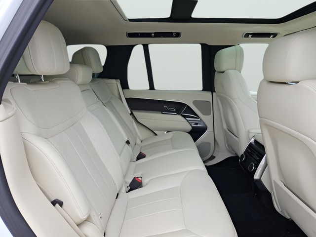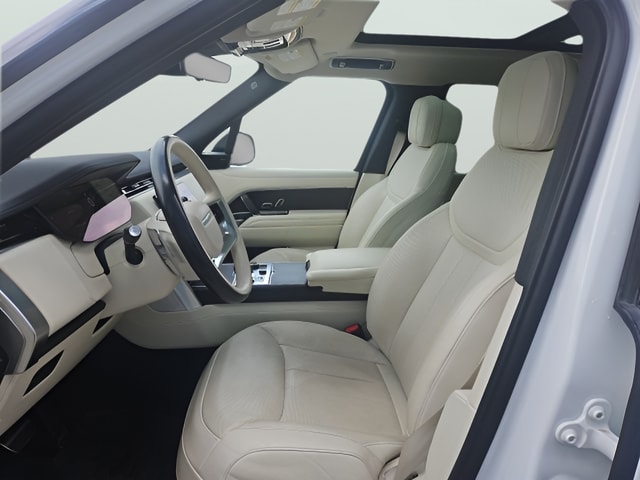 Fuji White 2023 Land Rover Range Rover SE AWD ZF 8-Speed Automatic 3.0L I6 Turbocharged CARFAX One-Owner. Clean CARFAX. Perlino/Perlino w/Perforated Windsor Leather Seat Trim, 20-Way Heated/Ventilated Electric Fr Bucket Seats, Black Contrast Roof, Cabin Air Purification Pro, ClearSight Interior Rear View Mirror, Domestic Plug Socket, Front Center Console Refrigerator Compartment, Head-Up Display, Heated Steering Wheel, Heated Windscreen, Hot Climate Pack, SV Bespoke Open Pore Wood & Leather Steering Wheel, Technology Pack, Wheels: 23" Gloss Black (Style 1075), 15 Speakers, 3.6 Axle Ratio, 4-Wheel Disc Brakes, ABS brakes, Adaptive suspension, Air Conditioning, Alloy wheels, AM/FM radio: SiriusXM w/360L, Anti-whiplash front head restraints, Auto High-beam Headlights, Auto tilt-away steering wheel, Auto-dimming door mirrors, Auto-dimming Rear-View mirror, Auto-leveling suspension, Automatic temperature control, Brake assist, Bumpers: body-color, Compass, Delay-off headlights, Driver door bin, Driver vanity mirror, Driver's Seat Mounted Armrest, Dual front impact airbags, Dual front side impact airbags, Electronic Stability Control, Emergency communication system, Exterior Parking Camera Rear, Four wheel independent suspension, Front anti-roll bar, Front Bucket Seats, Front Center Armrest w/Storage, Front dual zone A/C, Front fog lights, Front reading lights, Fully automatic headlights, Garage door transmitter: HomeLink, Genuine wood console insert, Genuine wood door panel insert, Head restraints memory, Headlight cleaning, Heated door mirrors, Heated front seats, Heated rear seats, Illuminated entry, Leather Shift Knob, Low tire pressure warning, Memory seat, Navigation system: Pivi Pro Connected Navigation, Occupant sensing airbag, Outside temperature display, Overhead airbag, Overhead console, Panic alarm, Passenger door bin, Passenger seat mounted armrest, Passenger vanity mirror, Perforated Windsor Leather Seat Trim, Power adjustable front head restraints, Power door mirrors, Power driver seat, Power moonroof, Power passenger seat, Power steering, Power windows, Premium audio system: Meridian, Radio data system, Radio: Meridian Sound System, Rain sensing wipers, Rear air conditioning, Rear anti-roll bar, Rear fog lights, Rear reading lights, Rear seat center armrest, Rear window defroster, Rear window wiper, Remote keyless entry, Security system, Speed control, Speed-sensing steering, Speed-Sensitive Wipers, Split folding rear seat, Steering wheel memory, Steering wheel mounted A/C controls, Steering wheel mounted audio controls, Tachometer, Telescoping steering wheel, Tilt steering wheel, Traction control, Trip computer, Turn signal indicator mirrors, Variably intermittent wipers, Weather band radio, Wireless Apple CarPlay/Wireless Android Auto, Perlino/Perlino w/Perforated Windsor Leather Seat Trim, 20-Way Heated/Ventilated Electric Fr Bucket Seats, Black Contrast Roof, Cabin Air Purification Pro, ClearSight Interior Rear View Mirror, Domestic Plug Socket, Front Center Console Refrigerator Compartment, Head-Up Display, Heated Steering Wheel, Heated Windscreen, Hot Climate Pack, SV Bespoke Open Pore Wood & Leather Steering Wheel, Technology Pack, Wheels: 23" Gloss Black (Style 1075).