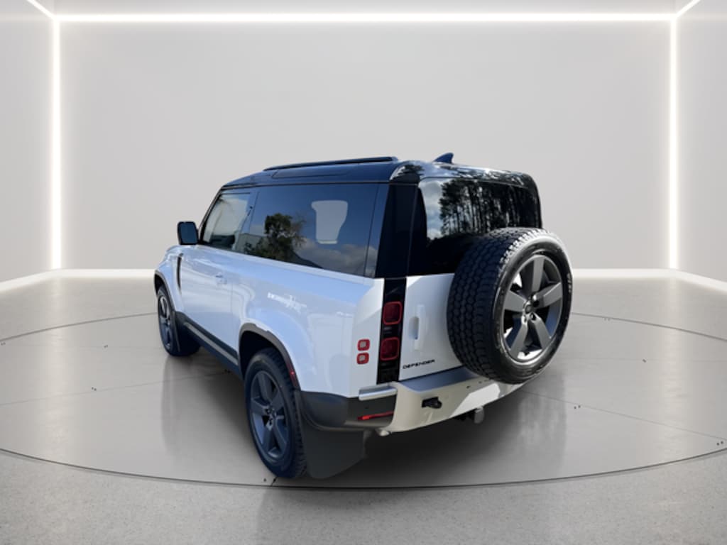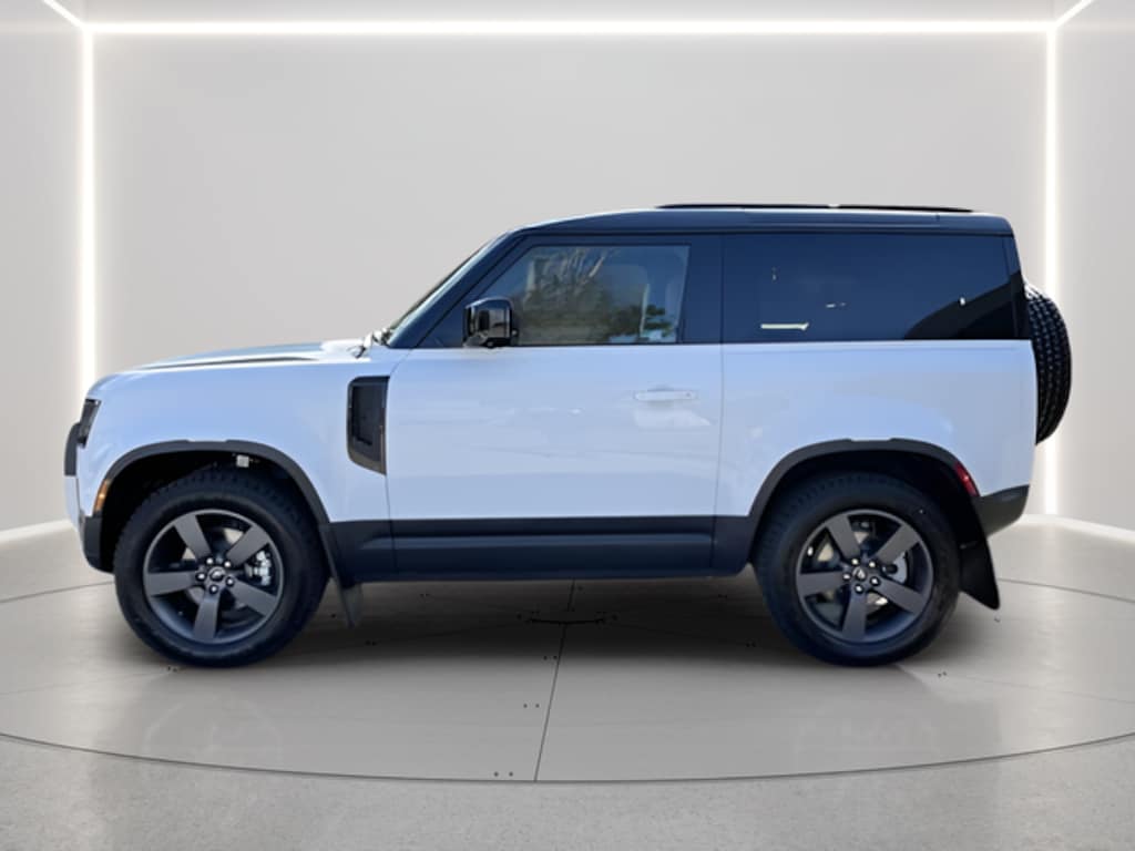 Fuji White 2025 Land Rover Defender 90 S AWD 8-Speed Automatic 2.0L I4 DI Turbocharged Clean CARFAX. 14-Way Heated & Cooled Electric Front Seats, Adaptive Dynamics, Air Suspension Pack, Black Contrast Roof, Cold Climate Pack, Electronic Active Differential, Electronic Air Suspension, Extended Leather Upgrade, Head-Up Display, Headlamp Power Washers, Heated Washer Jets, Heated Windscreen, Leather Covered Gear Knob, Leather Wrapped Steering Wheel w/PU Driver Airbag, Off-Road Pack, Premium Upgrade Interior Pack, Wade Sensing, Wheels: 20" Satin Dark Grey Style 5098, 11 Speakers, 12-Way Heated Semi-Powered Front Seats, 4-Wheel Disc Brakes, ABS brakes, Air Conditioning, Alloy wheels, AM/FM radio: SiriusXM, Apple CarPlay & Android Auto, Auto High-beam Headlights, Auto tilt-away steering wheel, Auto-dimming door mirrors, Auto-dimming Rear-View mirror, Automatic temperature control, Brake assist, Bumpers: body-color, Compass, Delay-off headlights, Driver door bin, Driver vanity mirror, Dual front impact airbags, Dual front side impact airbags, Electronic Stability Control, Exterior Parking Camera Rear, Exterior Protection Pack, Four wheel independent suspension, Front anti-roll bar, Front Bucket Seats, Front Center Armrest, Front dual zone A/C, Front fog lights, Front reading lights, Fully automatic headlights, Garage door transmitter: HomeLink, Heated door mirrors, Heated front seats, Heated steering wheel, Illuminated entry, Low tire pressure warning, Navigation system: Connected Navigation PIVI Pro, Occupant sensing airbag, Outside temperature display, Overhead airbag, Overhead console, Panic alarm, Passenger door bin, Passenger vanity mirror, Power door mirrors, Power driver seat, Power moonroof, Power passenger seat, Power steering, Power windows, Radio data system, Radio: Meridian Sound System, Rain sensing wipers, Rear anti-roll bar, Rear fog lights, Rear reading lights, Rear seat center armrest, Rear window defroster, Rear window wiper, Remote keyless entry, Resist & Resolve Seat Trim, Security system, Speed control, Speed-sensing steering, Speed-Sensitive Wipers, Split folding rear seat, Steering wheel mounted audio controls, Tachometer, Telescoping steering wheel, Tilt steering wheel, Traction control, Trip computer, Variably intermittent wipers, Weather band radio, 14-Way Heated & Cooled Electric Front Seats, Adaptive Dynamics, Air Suspension Pack, Black Contrast Roof, Cold Climate Pack, Electronic Active Differential, Electronic Air Suspension, Extended Leather Upgrade, Head-Up Display, Headlamp Power Washers, Heated Washer Jets, Heated Windscreen, Leather Covered Gear Knob, Leather Wrapped Steering Wheel w/PU Driver Airbag, Off-Road Pack, Premium Upgrade Interior Pack, Wade Sensing, Wheels: 20" Satin Dark Grey Style 5098.