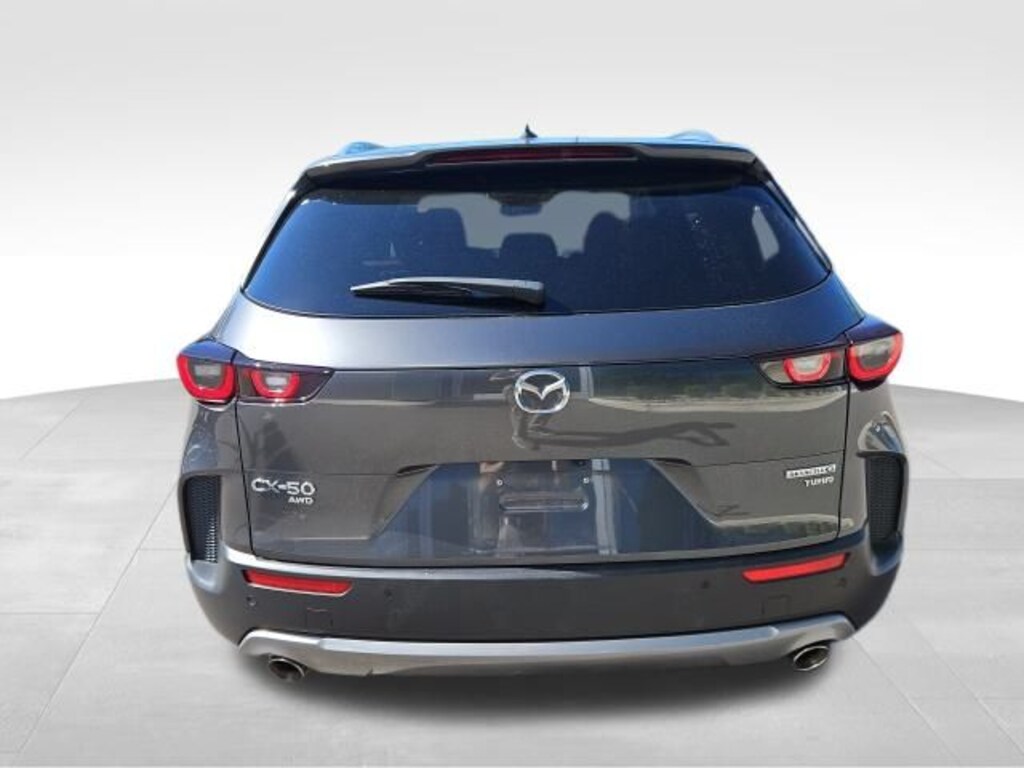Machine Gray Metallic 2023 Mazda CX-50 2.5 Turbo Premium Plus Package AWD 6-Speed Automatic 2.5L I4 Turbocharged DOHC 16V LEV3-ULEV125 227hp Clean CARFAX. 12 Speakers, 20" x 8J Aluminum Alloy Wheels, 3.841 Axle Ratio, 4-Wheel Disc Brakes, ABS brakes, Air Conditioning, Alloy wheels, AM/FM radio: SiriusXM, AppLink/Apple CarPlay and Android Auto, Auto High-beam Headlights, Auto-dimming door mirrors, Auto-dimming Rear-View mirror, Automatic temperature control, Brake assist, Bumpers: body-color, Cargo Blocks, Cargo Package, Carpet Cargo Mat, Compass, Delay-off headlights, Driver door bin, Driver vanity mirror, Dual front impact airbags, Dual front side impact airbags, Electronic Stability Control, Emergency communication system: MAZDA CONNECT, Front anti-roll bar, Front Bucket Seats, Front Center Armrest w/Storage, Front dual zone A/C, Front reading lights, Front wheel independent suspension, Fully automatic headlights, Garage door transmitter: HomeLink, Heads-Up Display, Heated & Ventilated Front Bucket Seats, Heated door mirrors, Heated front seats, Heated rear seats, Heated steering wheel, Illuminated entry, Knee airbag, Leather Seat Trim, Leather Shift Knob, Leather steering wheel, Low tire pressure warning, Machine Gray Metallic Paint Charge, Memory seat, Navigation system: MAZDA CONNECT, Occupant sensing airbag, Outside temperature display, Overhead airbag, Overhead console, Panic alarm, Passenger door bin, Passenger vanity mirror, Power door mirrors, Power driver seat, Power Liftgate, Power moonroof, Power passenger seat, Power steering, Power windows, Radio data system, Radio: AM/FM/HD Audio System, Rain sensing wipers, Rear seat center armrest, Rear window defroster, Rear window wiper, Remote keyless entry, Speed control, Speed-sensing steering, Split folding rear seat, Spoiler, Steering wheel mounted audio controls, Tachometer, Telescoping steering wheel, Tilt steering wheel, Traction control, Trip computer, Turn signal indicator mirrors, Variably intermittent wipers, Ventilated front seats.