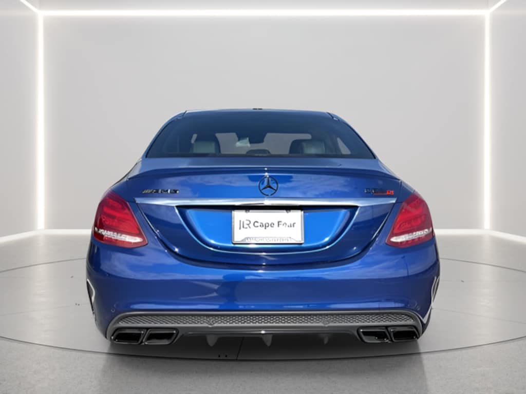 Brilliant Blue Metallic 2018 Mercedes-Benz C-Class C 63 S AMG® RWD 7-Speed Automatic 4.0L V8 Clean CARFAX. 13 Speakers, 19" AMG® Twin 5-Spoke Wheels, 4-Way Driver's Lumbar Support, 4-Wheel Disc Brakes, ABS brakes, Adaptive suspension, Air Conditioning, Alloy wheels, AM/FM radio: SiriusXM, Auto tilt-away steering wheel, Auto-dimming door mirrors, Auto-dimming Rear-View mirror, Automatic temperature control, Blind spot sensor: Blind Spot Assist warning, Brake assist, Bumpers: body-color, CD player, Compass, Delay-off headlights, Driver door bin, Driver vanity mirror, Dual front impact airbags, Dual front side impact airbags, DVD-Audio, Electronic Stability Control, Emergency communication system: mbrace Secure, Exterior Parking Camera Rear, Four wheel independent suspension, Front anti-roll bar, Front Bucket Seats, Front Center Armrest, Front dual zone A/C, Front reading lights, Fully automatic headlights, Garage door transmitter: Homelink, Genuine wood console insert, Genuine wood dashboard insert, Genuine wood door panel insert, Head restraints memory, Heated door mirrors, Heated Front Seats, Heated front seats, High Performance Tires, Illuminated entry, Knee airbag, Low tire pressure warning, Memory seat, Nappa Leather Upholstery, Occupant sensing airbag, Outside temperature display, Overhead airbag, Overhead console, Panic alarm, Passenger door bin, Passenger vanity mirror, Power adjustable front head restraints, Power door mirrors, Power driver seat, Power Driver Seat & Steering Column w/Memory, Power moonroof, Power passenger seat, Power Passenger Seat w/Memory, Power steering, Power windows, Premium audio system: COMAND®, Radio data system, Radio: Audio 20, Rain sensing wipers, Rear anti-roll bar, Rear fog lights, Rear reading lights, Rear seat center armrest, Rear side impact airbag, Rear window defroster, Remote keyless entry, Security system, Single DVD/CD Player, SIRIUS Satellite Radio, Speed control, Speed-sensing steering, Split folding rear seat, Spoiler, Sport steering wheel, Steering wheel memory, Steering wheel mounted audio controls, Tachometer, Telescoping steering wheel, Tilt steering wheel, Traction control, Trip computer, Turn signal indicator mirrors, Variably intermittent wipers, Weather band radio.